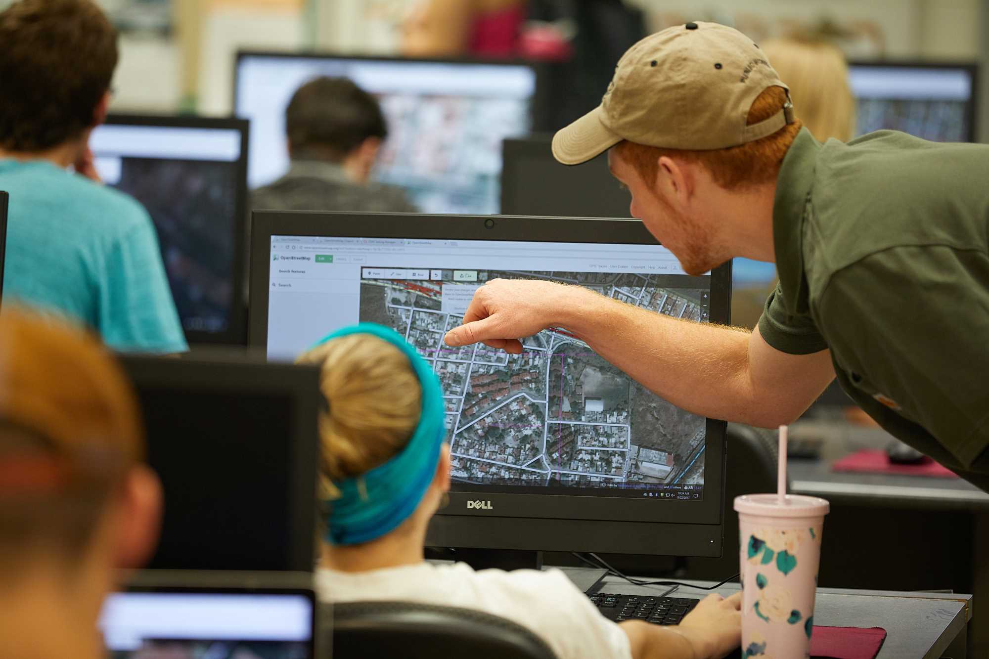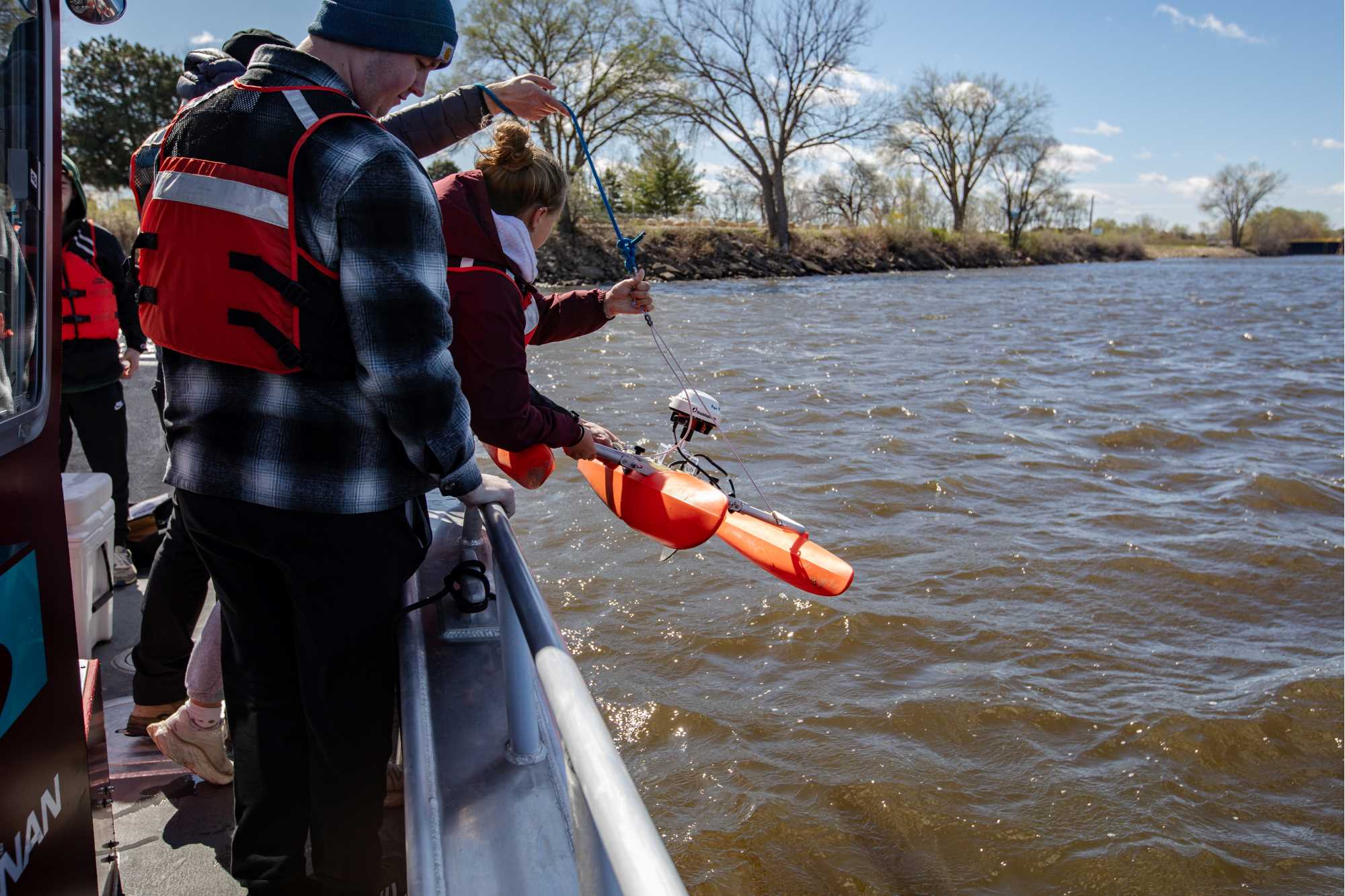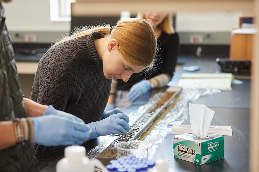 Students have access to field equipment including boats, unmanned aerial systems (drones), field mapping and surveying technology, sediment and soil sampling equipment, sonar for aquatic mapping and much more.