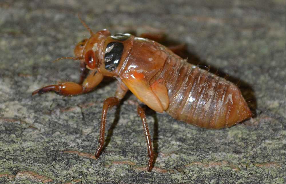 Below the ground, cicadas are quietly growing and sucking on liquid flowing through the roots of plants. Nymphs emerge from the earth en masse, climb trees and break out of their old exoskeletons, which includes their foregut, hindgut and tracheae. A new exoskeleton, supple and wrinkled underneath the old, is then exposed, hardening and gaining color over time.