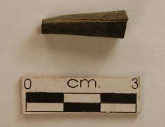 Tinkling Cone Few Native American trade items were recovered during the 1999 excavations at Second Fort Crawford in Prairie du Chien, Wisconsin. Native Americans received their annual annuities at the fort and probably would have gotten some supplies at the sutler’s store. The only items found that were clearly trade or Native American associated were a trade earring, some of the beads, vermillion (red pigment), and this tinkling cone, which was found in the Officers’ Quarters. It is tapered at one end and made of brass.