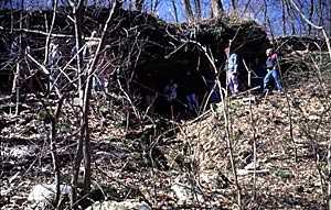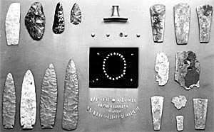 Rockshelter Silver Mound in Jackson County is a good example of a "quarry site" where people gathered the stones to make their tools. Although the name implies that it contains silver, Silver Mound has no silver. It is a large natural hill made up of a very hard kind of cemented sandstone called quartzite that was excellent for making stone tools. This stone was highly desired by ancient peoples. From the earliest days, people traveled to Silver Mound to collect the stone, and it has been used throughout Wisconsin's prehistory. People traded or traveled for hundreds of miles to collect this stone. Points of this material have been found as far away as Kentucky. There are quarry pits that were used for thousands of years that had to be dug several feet into the bedrock to obtain the best materials.