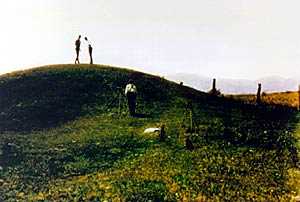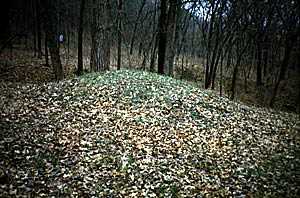 Nicholls Mound An example of a Hopewell site in Wisconsin is Nicholls Mound near the city of Trempealeau on the Mississippi River. When archaeologists from the Milwaukee Public Museum excavated the mound in the late 1920 - 1930's they discovered a burial tomb dug into the ground and covered with logs. A 12 foot high mound was built over the tomb. The tomb contained several individuals who were buried with ceremonial items made from exotic materials. Some of the items included large stone knives over 6 inches long made of obsidian from the Rocky Mountains, copper earspools, 6 copper axes, marine shell beads, and 20 freshwater pearl beads. You can still visit Nicholls mound from the bike trail just outside Trempealeau.