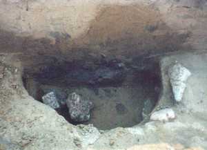 Feature A combination of artifacts and/or ecofacts that create a single definable entity, such as a fireplace, burial, or garbage pit. Unlike artifacts, features are part of the landscape and cannot be removed from the site without losing the overall value of the whole.