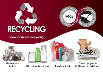 Welcome and thanks for your interest in recycling at UW-La Crosse. UWL's recycling program was established in 1991 to reduce the amount of solid waste as well as reusing, and recycling those waste materials when possible.