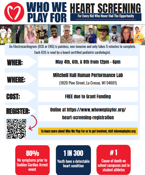 The mission of the Human Performance Lab is to enable students to grow as professionals in the Exercise & Sport Science Department. Numerous studies are carried out yearly and volunteers as a subject are always needed. Please contact Chris Jones about testing or volunteering for a study (608.785.8685)