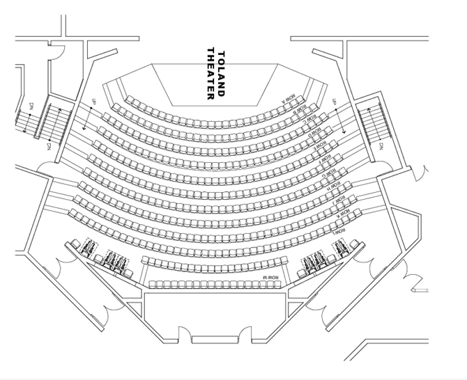 Performances are staged in the Toland Theatre, a 429-seat, fully-equipped playhouse with state-of-the-art lighting system, trapped stage floor, hydraulic lift, and counterweighted fly system. The Toland Theatre seating chart is available here or as you purchase tickets through the Ludus Ticketing System.