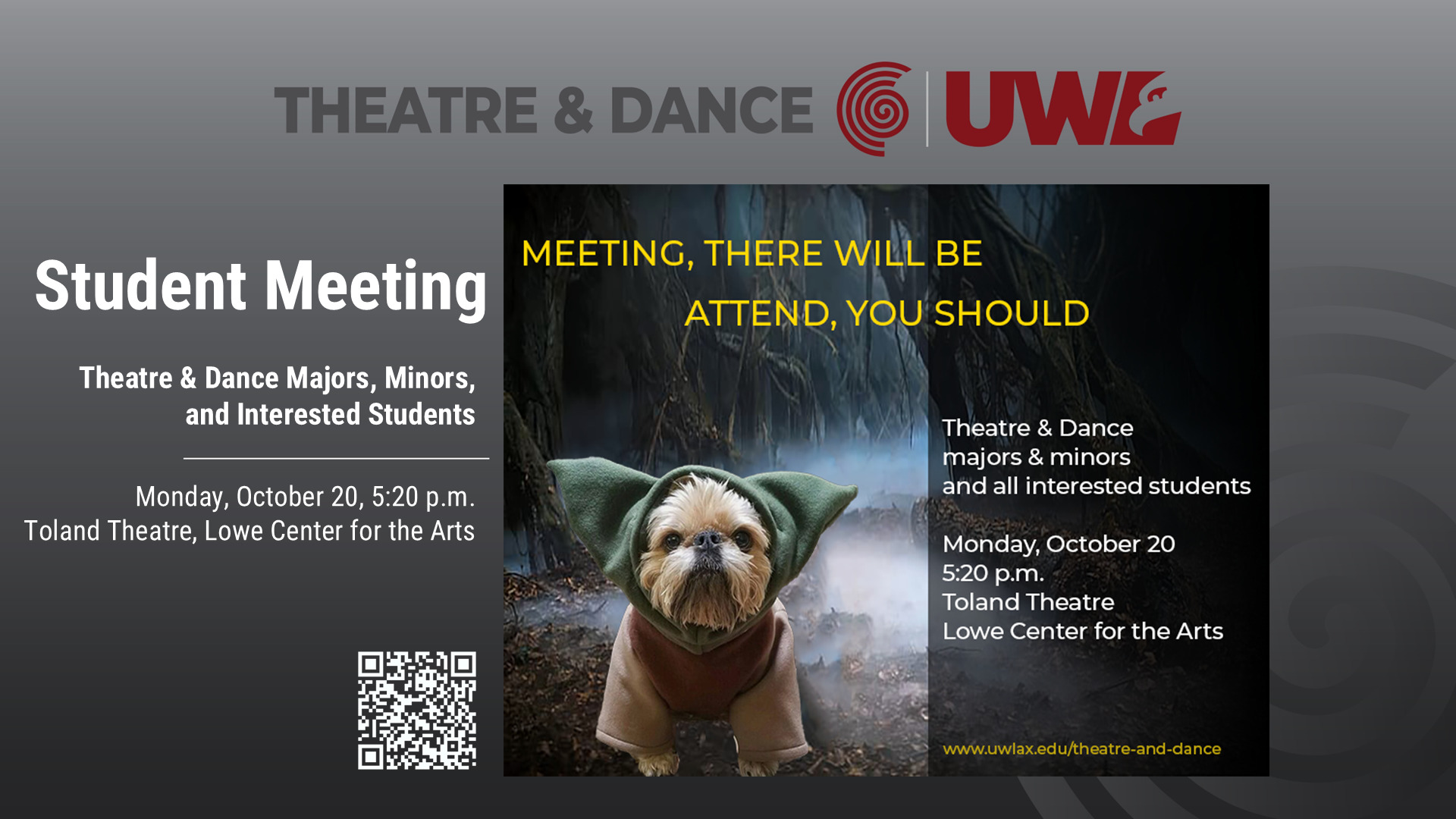 UWL Theatre and Dance provides students with the theatrical knowledge, skills, collaborative teamwork, creative problem-solving, and professional connections needed for success after graduation.
