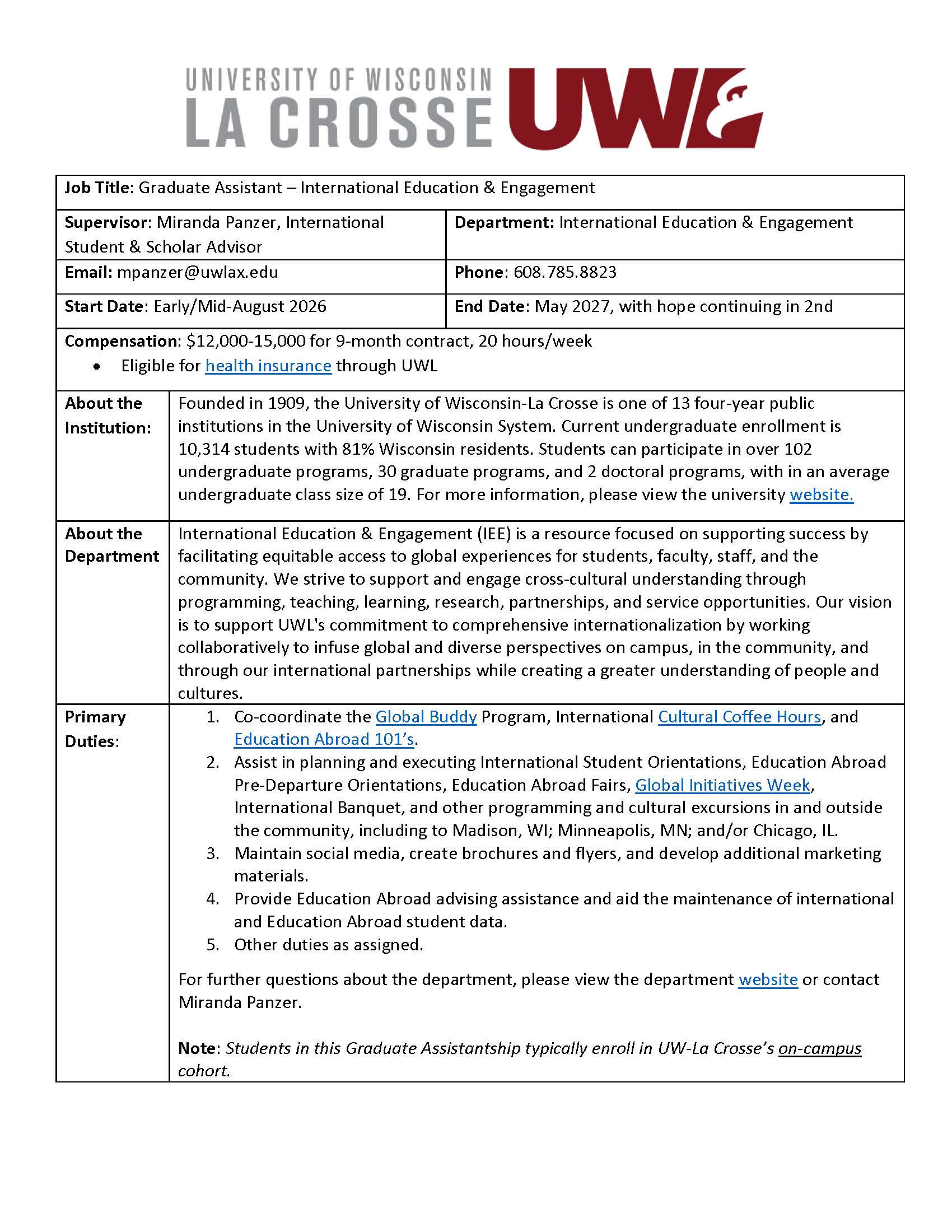 | International Education & Engagement | Graduate Assistant - [Job Description] |