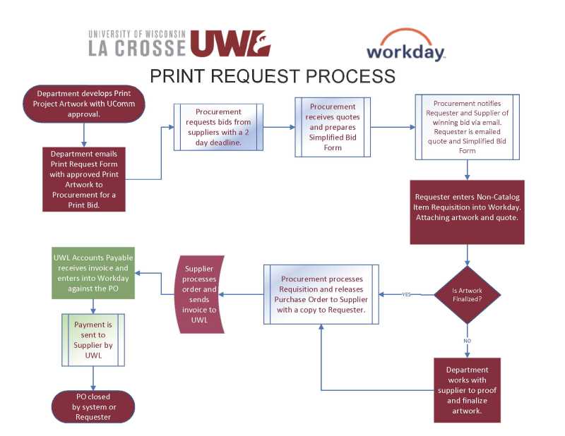 Below is the Simplified bidding process to follow if you are in need of actual print services. If you are unclear which service to use, please contact procurment@uwlax.edu.