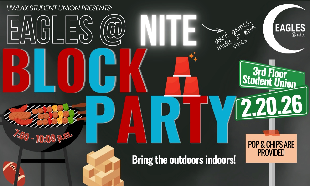 For questions about this event or to request disability accommodations , contact University Centers - MyOrgs at 608.785.8888 or univcenters@uwlax.edu.