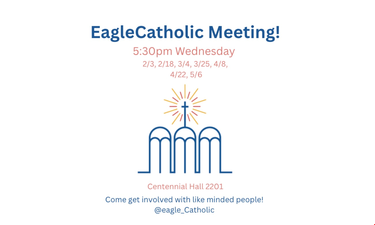 Are you looking to get involved with more like minded people who are striving to live a life centered on Christ!? Join eagleCatholic where we plan and facilitate social and worship events, service opportunities, and share in fellowship with one another!