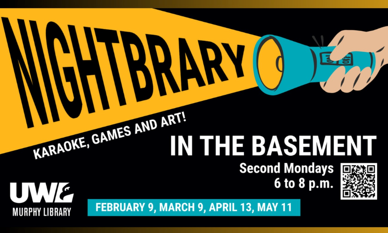 Nightbrary invites UWL students to visit their library, interact with peers, learn with librarians, and play at various game, art, and music stages in the Murphy Library basement during a meaningful and memorable evening of social engagement.