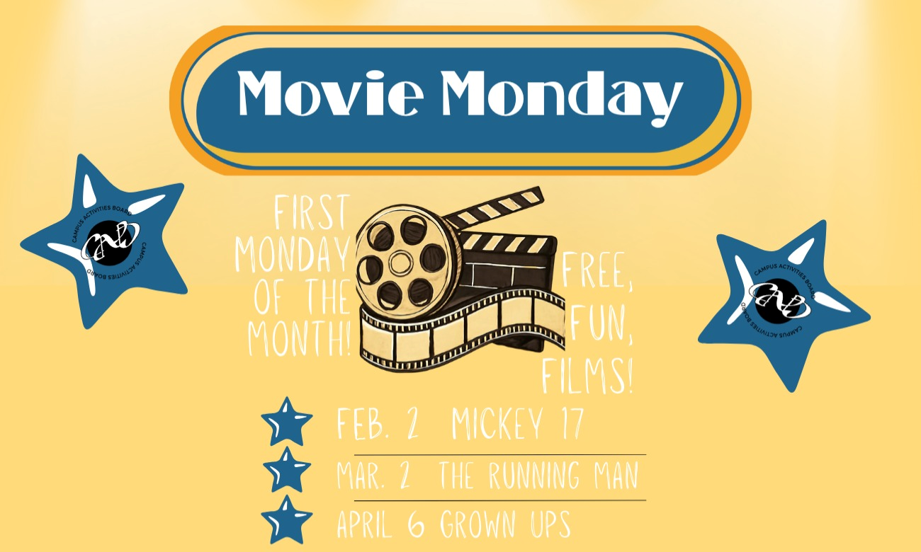 Join CAB for Movie Monday! On the first Monday of every month, enjoy a free film in the Union Theater at 7:00PM! Bring your friends, you don't want to miss this!