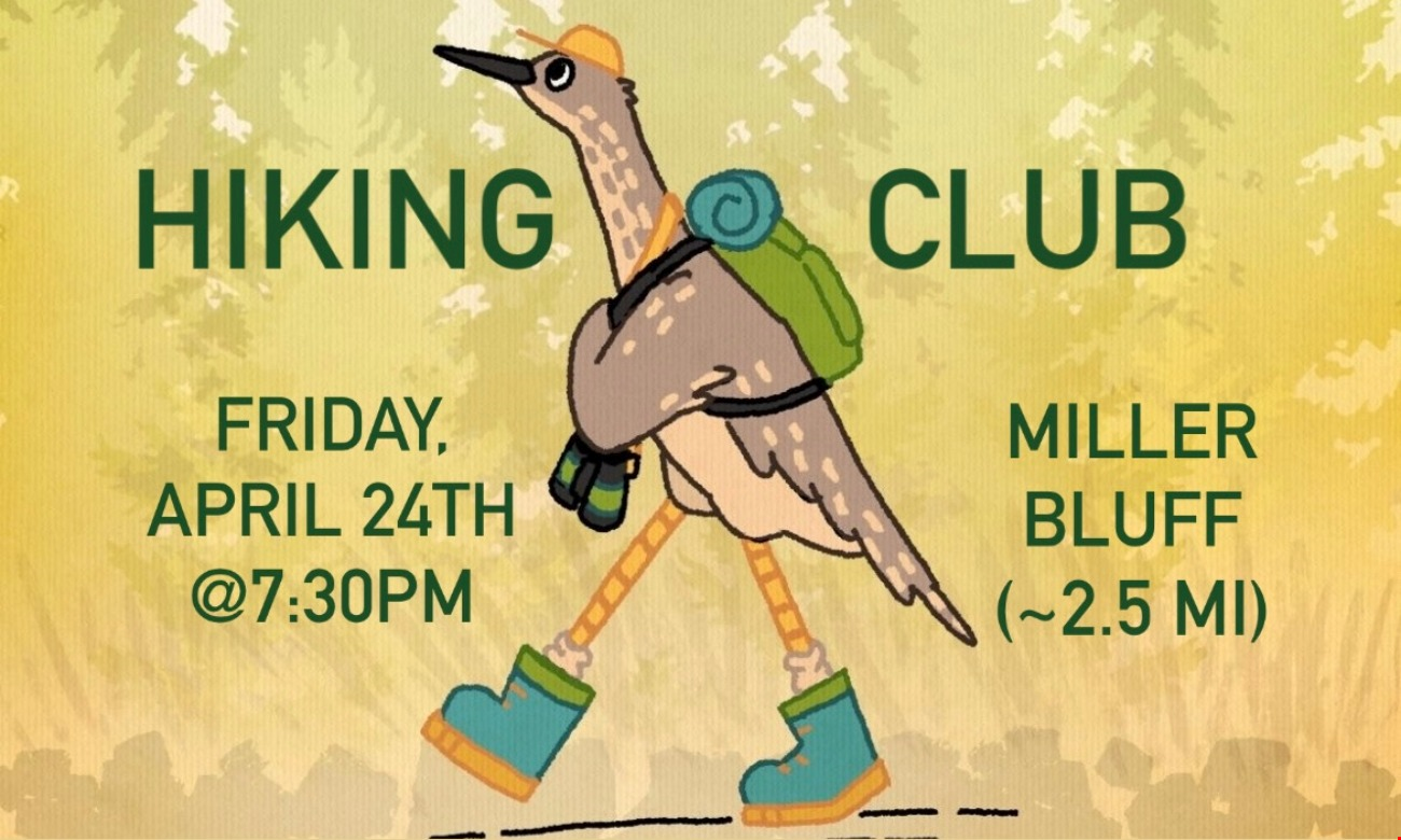 Join us for a 2.5 mile sunset hike through Miller Bluff on Friday, April 24th. We will meet at the Lower Hixon Trailhead by 7:30pm!