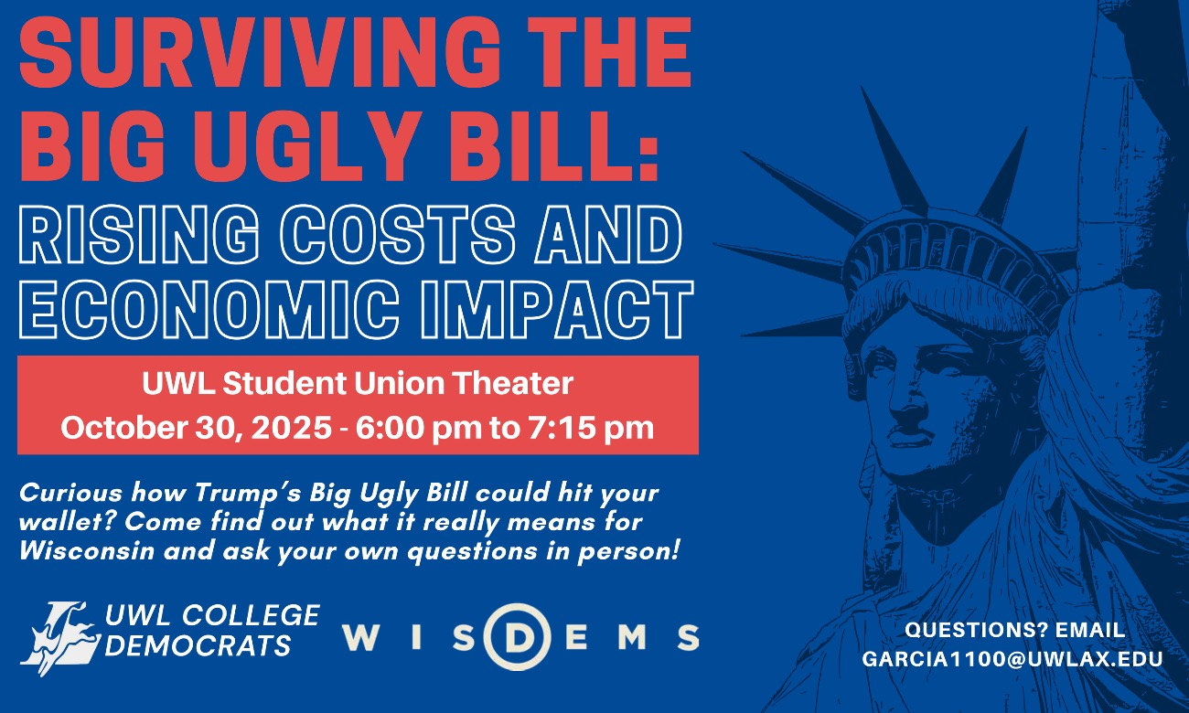 In collaboration with WisDems, we’re breaking down what Trump’s “Big Ugly Bill” really means for students and working people in Wisconsin. Come learn how it could impact your wallet and ask your own questions in person.