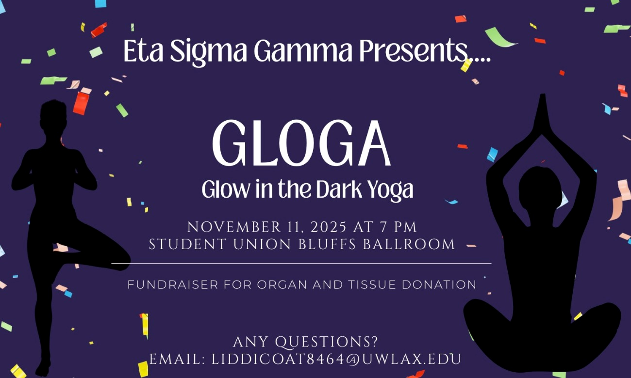 GLOGA is a glow in the dark yoga event for everyone! Join us for glow in the dark yoga and learn about the importance of organ and tissue donation. This is a fundraiser for organ and tissue donation, so bring cash for a chance to win a basket!