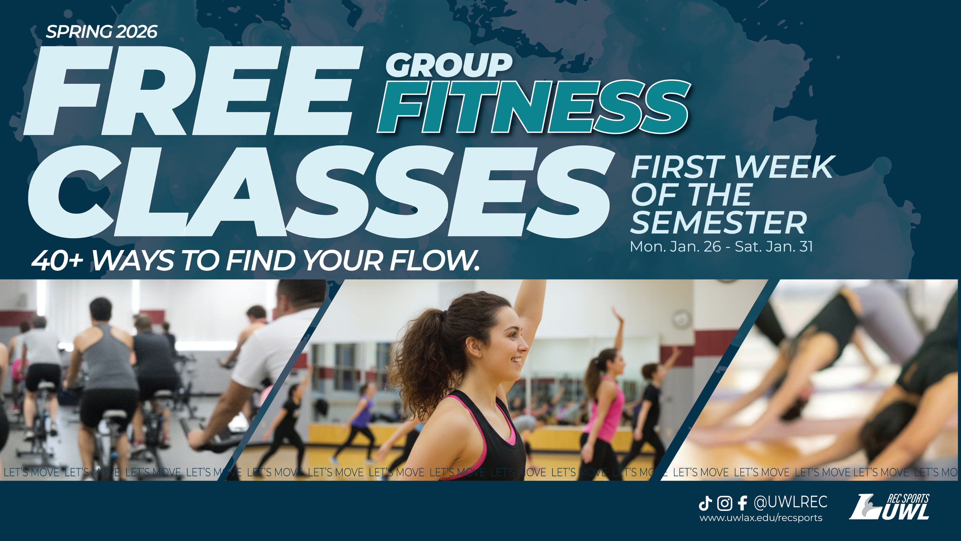 All classes on the Group Fitness Schedule are free for the first week of school. Just bring your student ID or Rec App barcode. Pre-registration is only required for cycling classes due to the limited number of bikes. See the full schedule online or with the app.
