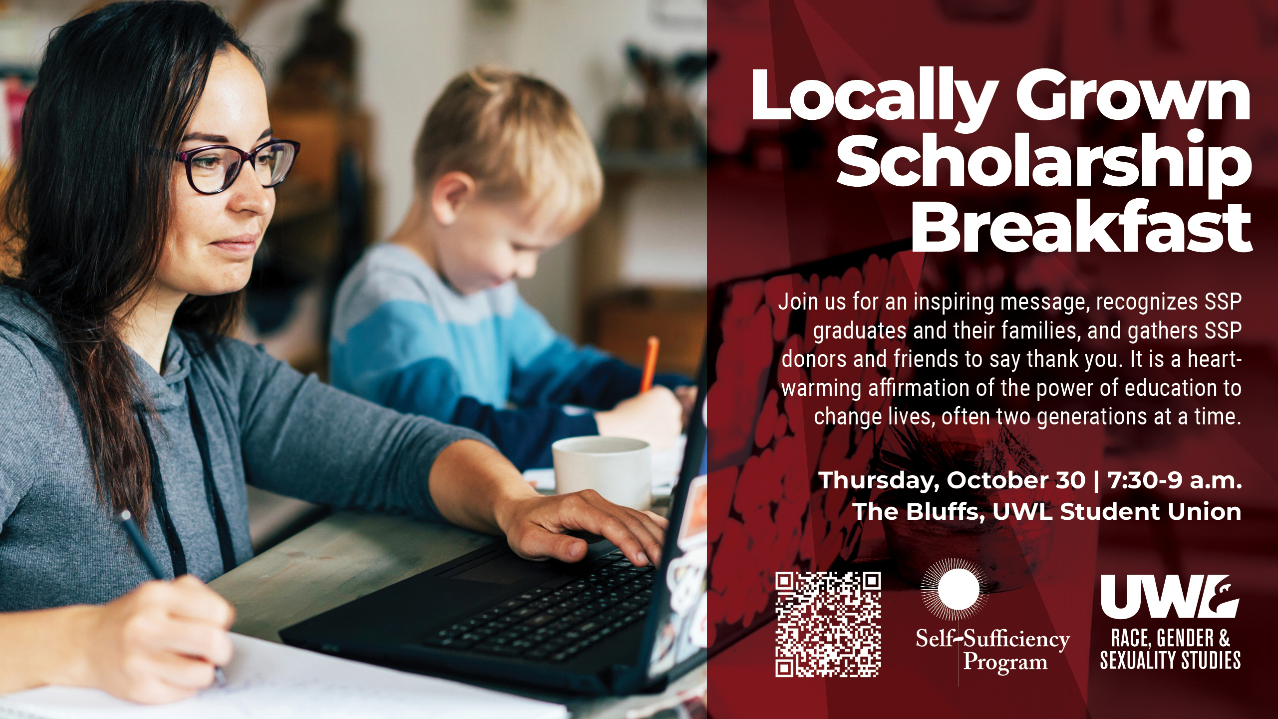 The UWL Self-Sufficiency Program (SSP) invites the UWL campus and greater La Crosse area to the Self-Sufficiency Program Locally Grown Scholarship Breakfast. We extended a special invitation to former and current SSP students and their families. Children are welcome.