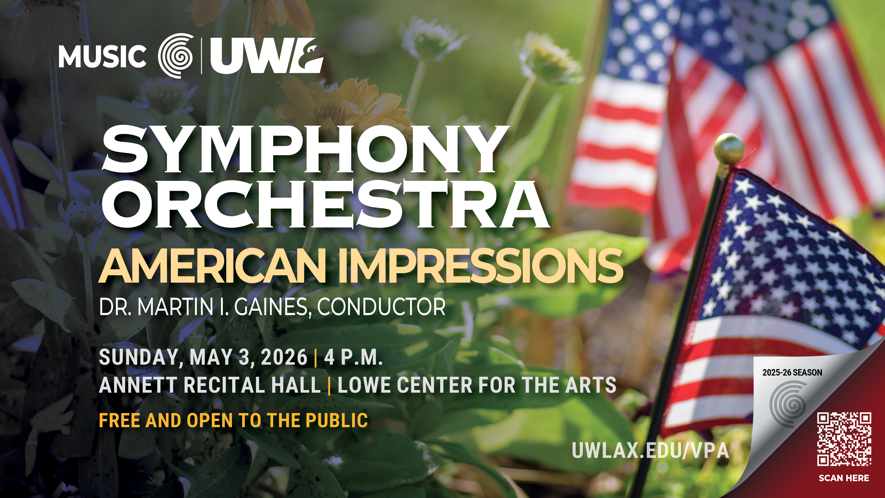 Join us for the final symphony orchestra concert of the season. Details forthcoming. Free & open to the public.