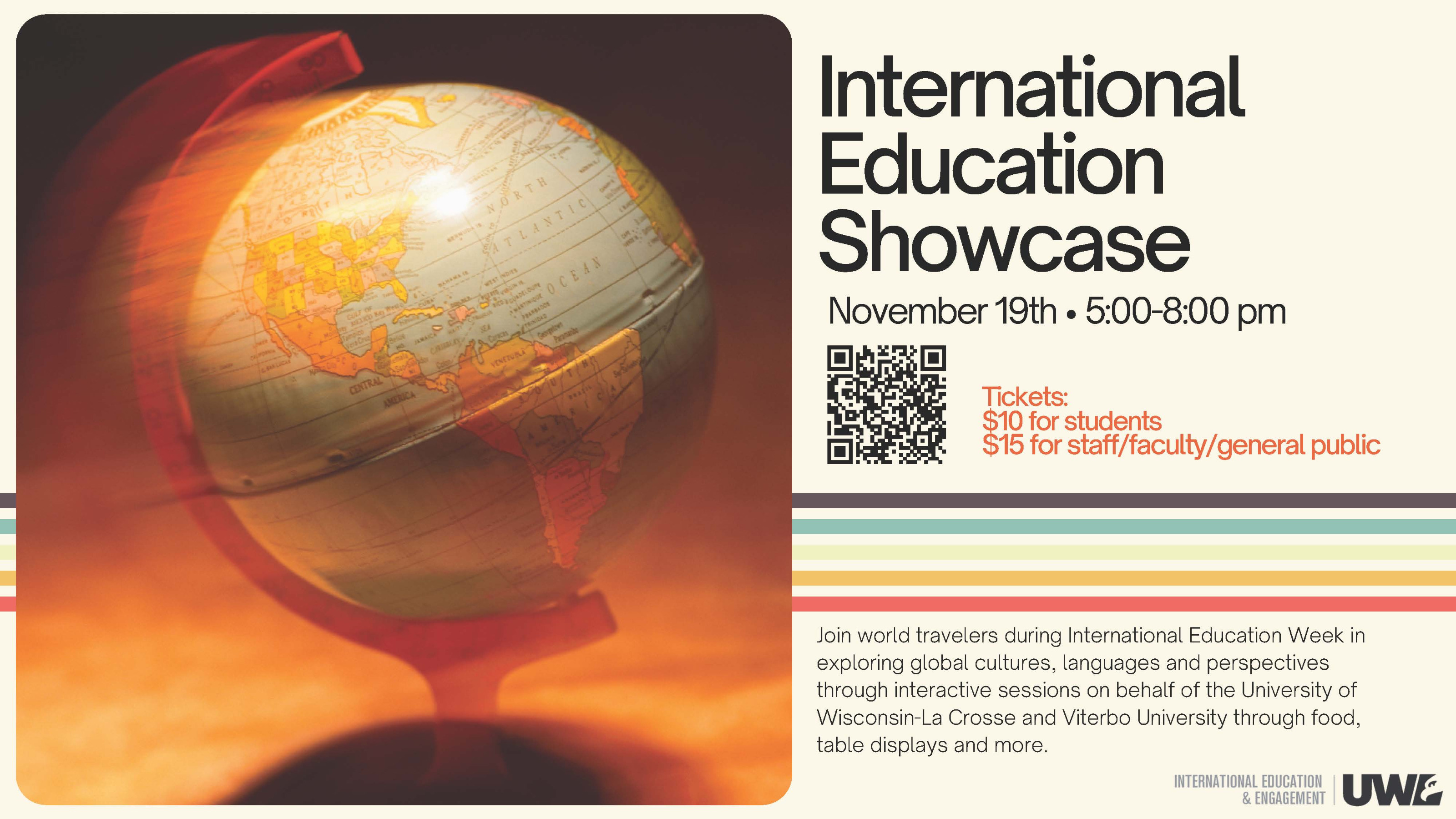 Join world travelers during International Education Week in exploring global cultures, languages, and perspectives through interactive sessions on behalf of the University of Wisconsin-La Crosse (UWL), Viterbo University, and Western Technical College through food, table displays, and more.