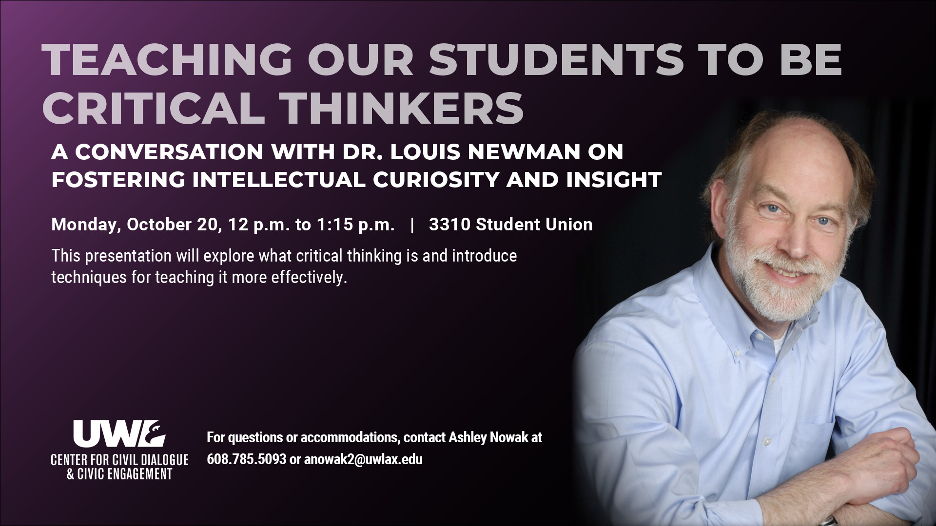 For questions about this event or to request disability accommodations , contact Ashley Nowak at 608.785.5093 or anowak2@uwlax.edu.