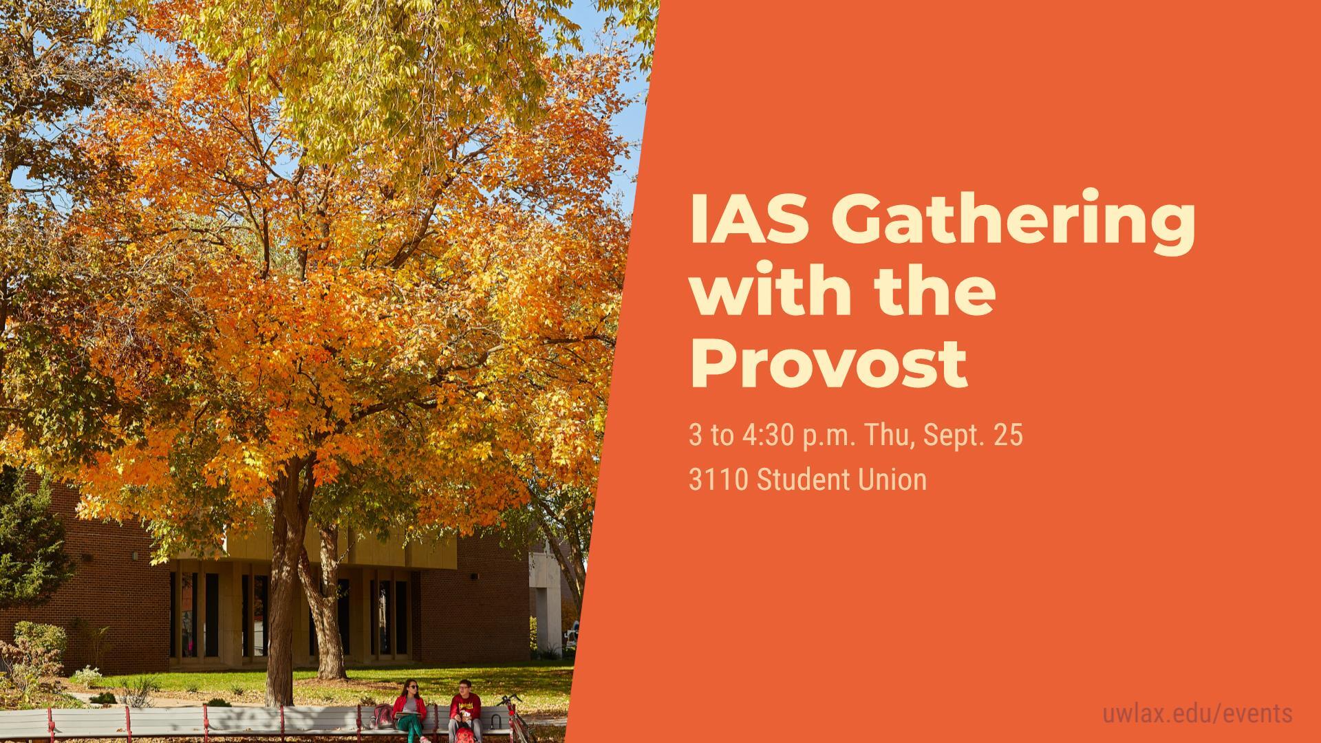 Instructional Academic Staff are invited to attend an information session with Provost Betsy Morgan and IAS Liaison Ryan Friesen. Bring your questions and concerns for discussion.