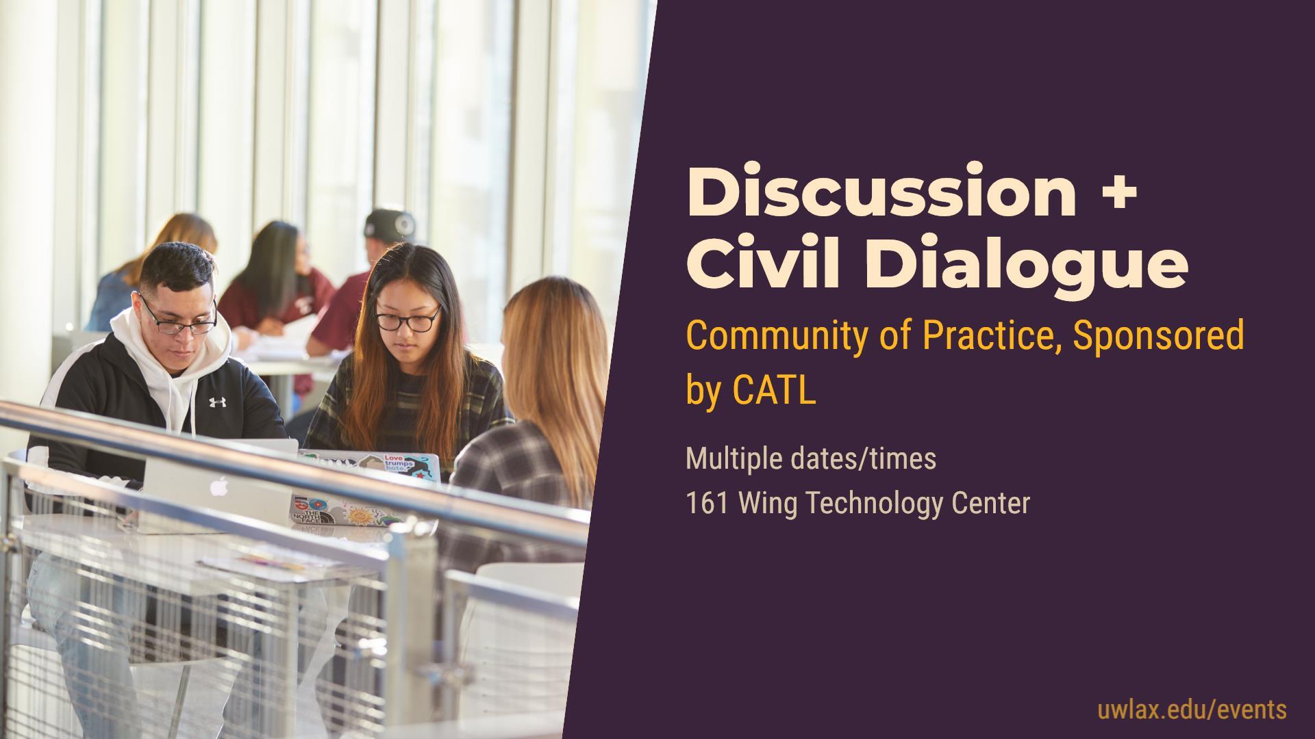 CATL is hosting a Community of Practice for Fall 2025 to share and explore how instructors can foster civil dialogue and meaningful discussions in the classroom. We aim to build on the momentum from The Discussion Project hosted in May 2024 and 2025, and continue these cross-campus conversations about promoting productive dialogue and engagement in our classes. UWL instructors who are interested in, or already incorporating, strategies for guiding discussions on complex topics are encouraged to join. This community provides an opportunity to share, reflect on, and develop approaches for encouraging thoughtful discourse, with a goal of disseminating our insights across the university.