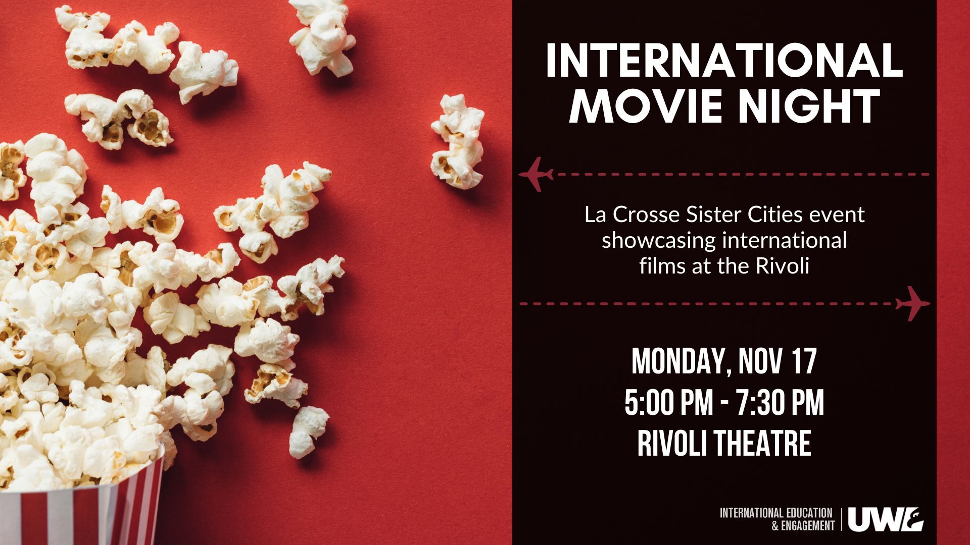 For questions about this event or to request disability accommodations , contact International Education & Engagement at 608.785.8016 or international@uwlax.edu.