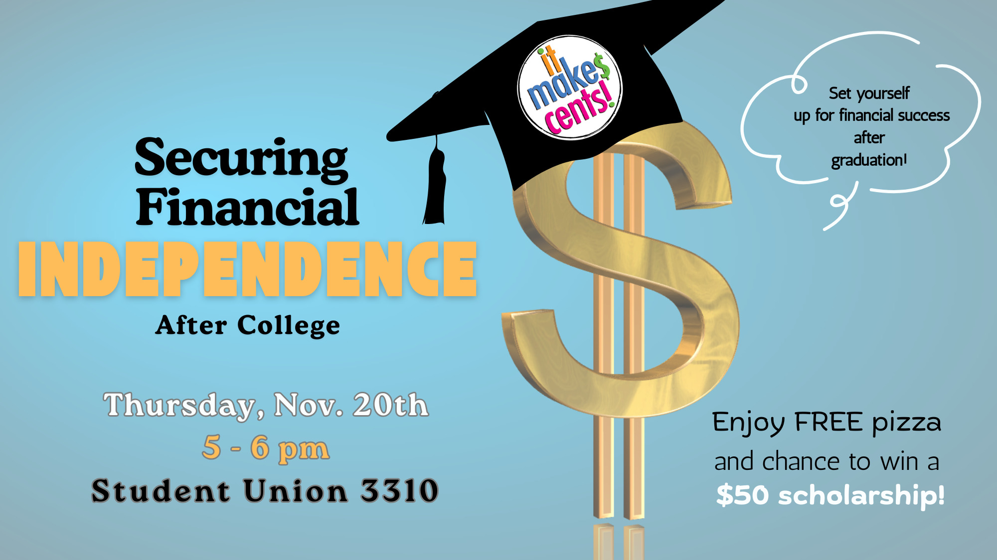 As graduation approaches, you may have some concerns about affording life after graduation; from rent to loans and car payments, expenses can add up quickly. Preparing financially for post-grad life means doing your research, planning ahead, and saving money where you can. Attend this workshop to ease any worries you may have and be excited for your future! Set yourself up financial success as your IMC team covers your next steps!