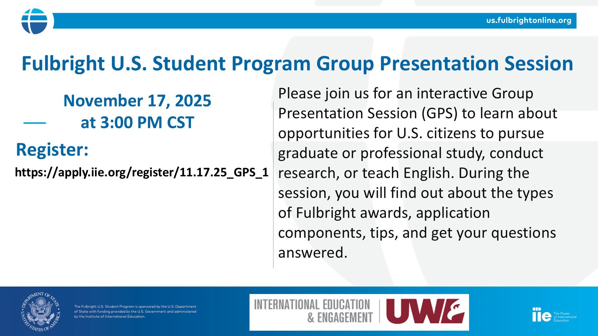 Join this virtual information session to learn more about funded opportunities to pursue graduate or professional study, conduct advanced research, or teach English in over 140 countries after graduation!