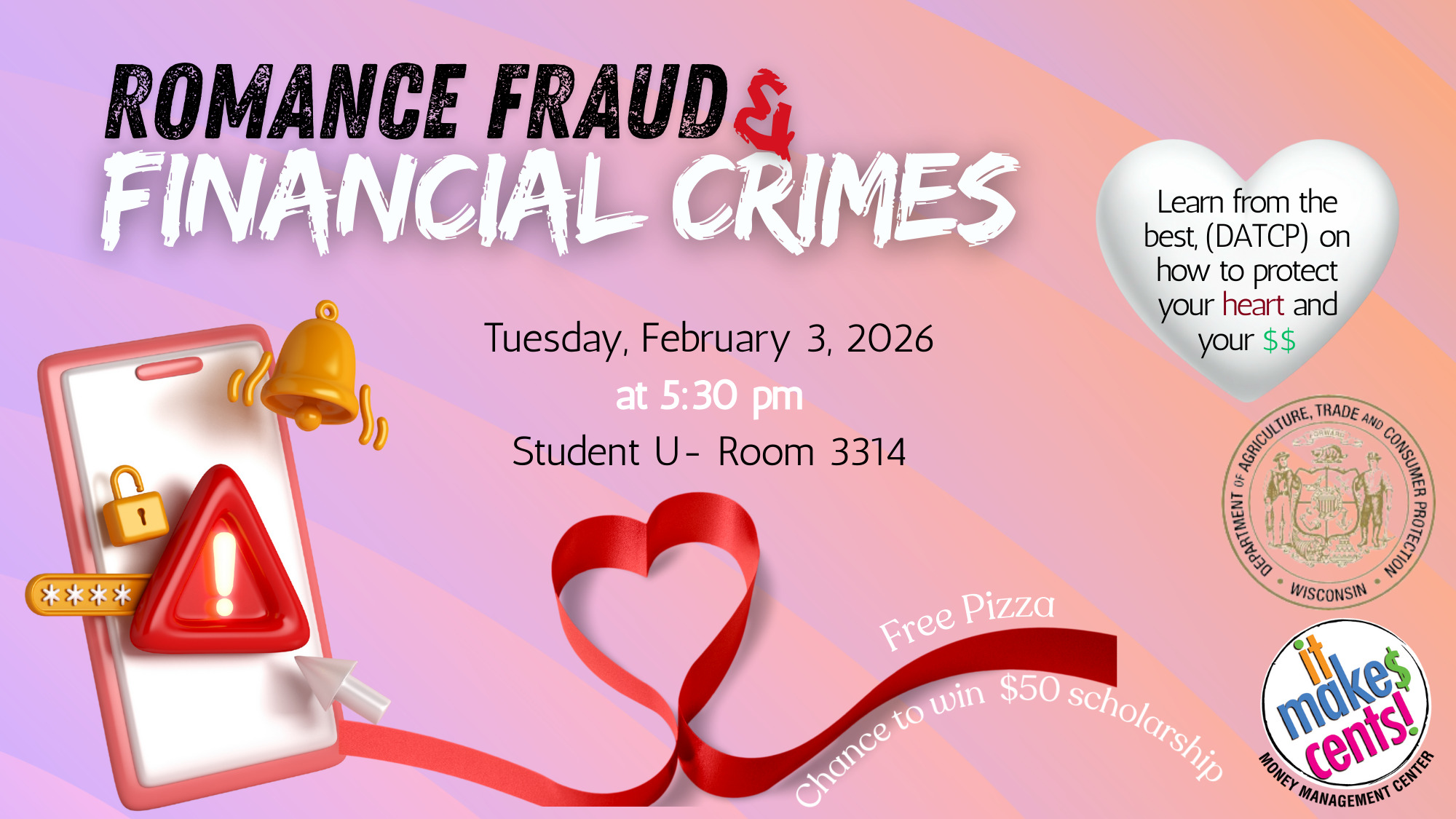 We are happy to welcome back Jeff Kersten from DATCP! Join us in learning the most recent scams that affect not only individuals bank accounts, but love/romance fraud that leaves heart's broken. Get the insight needed to be safe on social media and when meeting love interests online. You and or someone you know will benefit from this knowledge! This event is free and open to the public.