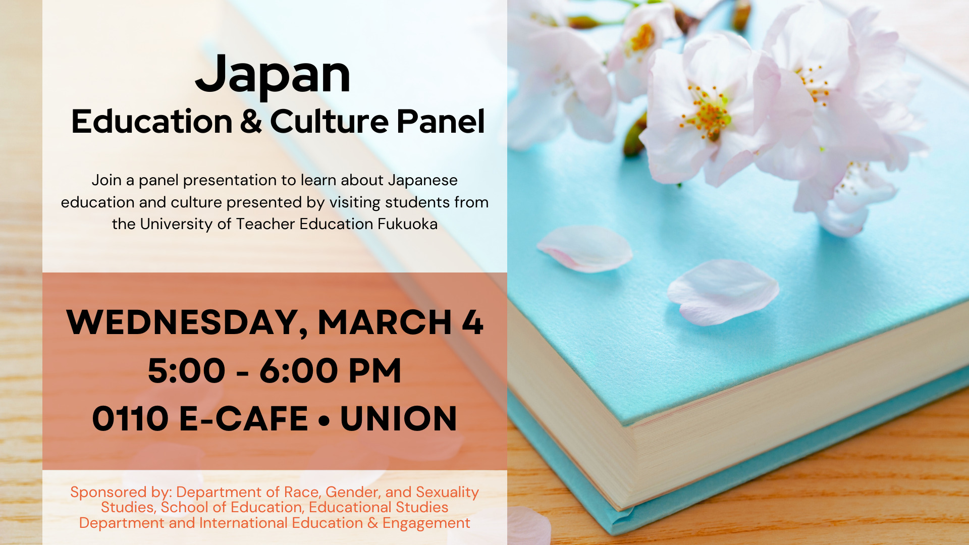 Join us for a panel presentation to learn about Japanese education and culture presented by visiting students from the University of Teacher Education Fukuoka (UTEF)!