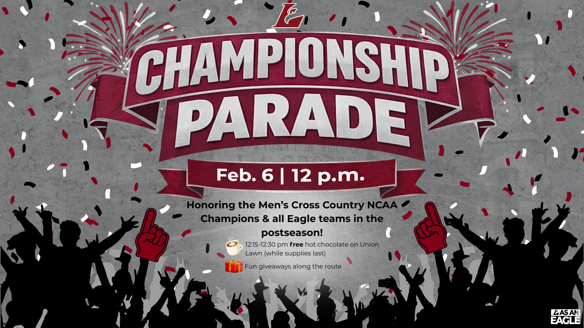 UWL Athletics is hosting its first-ever championship parade! This event will celebrate Men's Cross Country winning the NCAA DIII National Championship this fall, as well as honoring other UWL Athletics teams that qualified for NCAA post-season competition this fall season. The parade will begin at 12 p.m. on Friday, February 6. The route will loop through campus, starting near Mitchell Hall, going past the Student Union on Badger St. (where you can grab a free cup of hot chocolate!), before turning near the residence halls on the western side of campus and concluding near Hoeschler Clock Tower.
