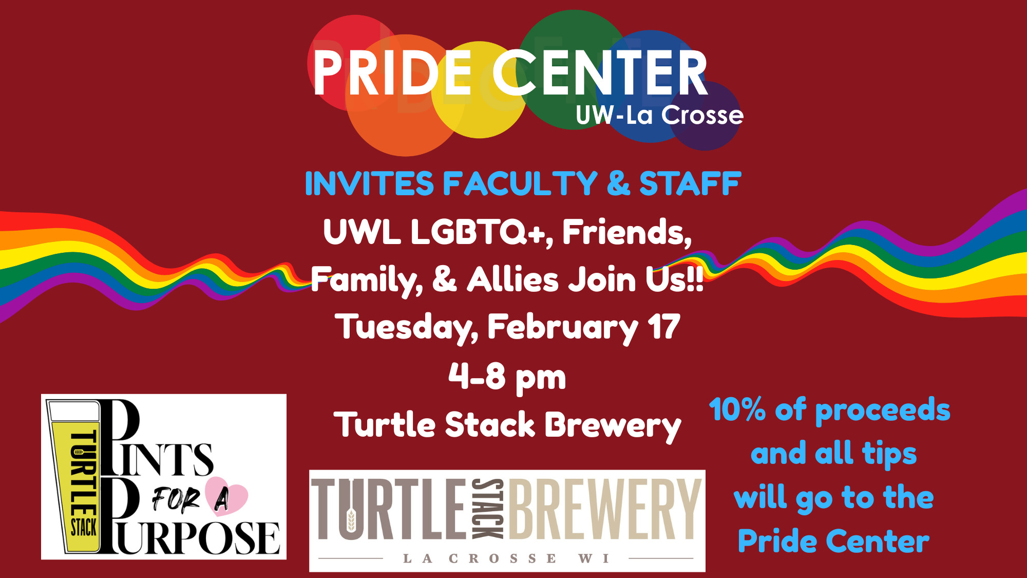 The Pride Center invites all LGBTQ+ friends, family, & allies to join us for Pints for a Purpose!! Turtle Stack Brewery will donate 10% of the night's proceeds and all of the tips to the Pride Center.