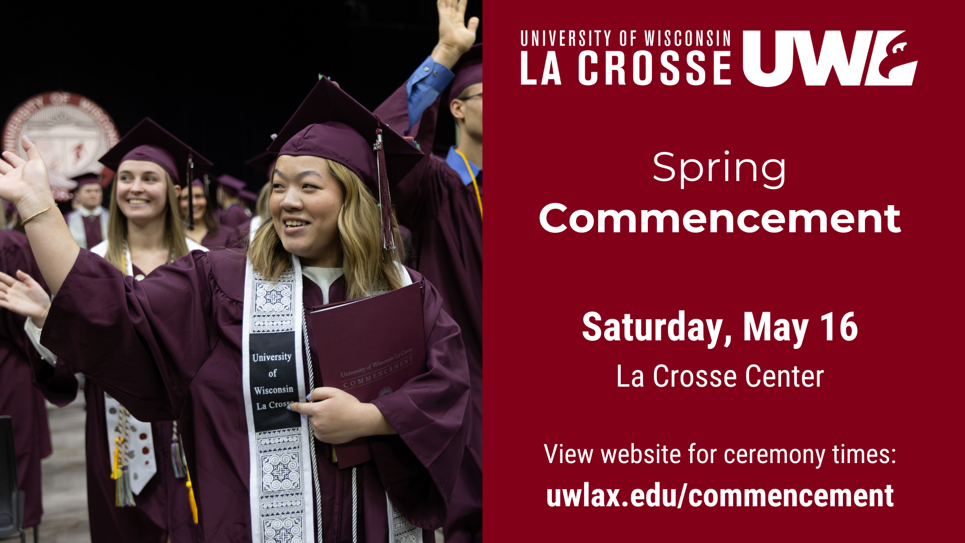 Commencement will be held at the La Crosse Center. There will be three ceremonies.