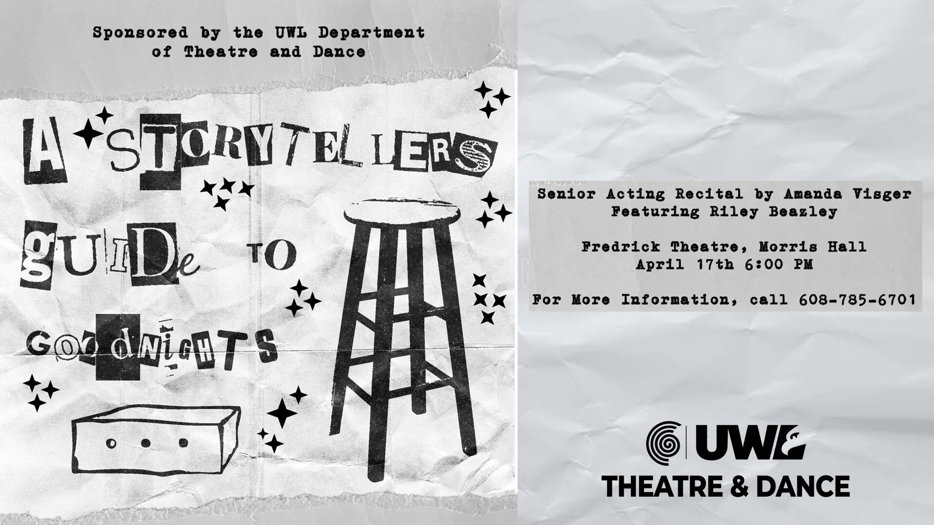 Join us on Friday, April 17 at 6:00 p.m. in the Frederick Theatre (UWL Morris Hall, 1615 State Street, La Crosse) for Amanda Visger's Senior Acting Recital.
