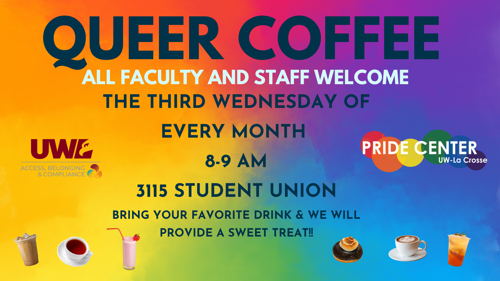 Bring your favorite drink and join us for LGBTQ+ community, celebration, and communication.