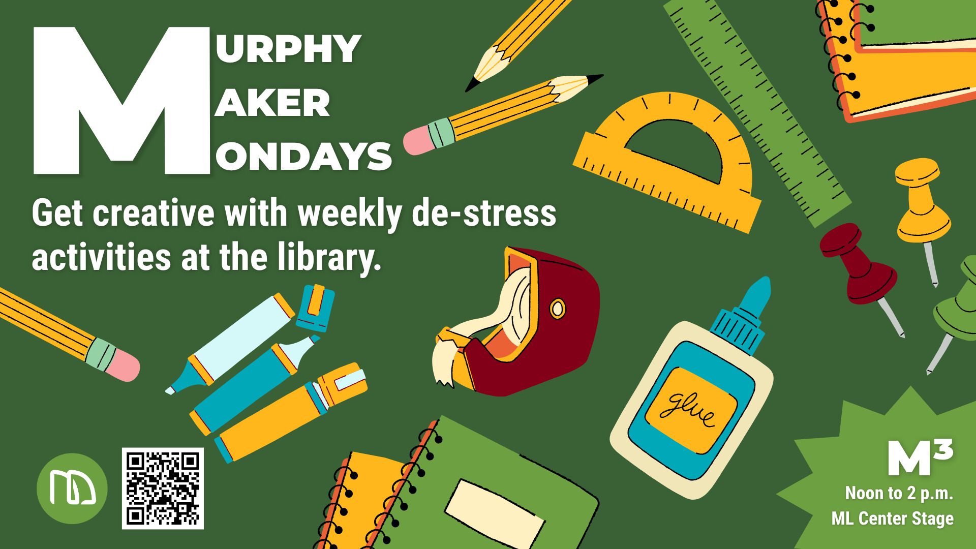 Need a break from studying? Want a simple creative outlet? Come to Murphy Maker Mondays. Starting April 6th, Murphy Library is offering a break from the stress of studying.