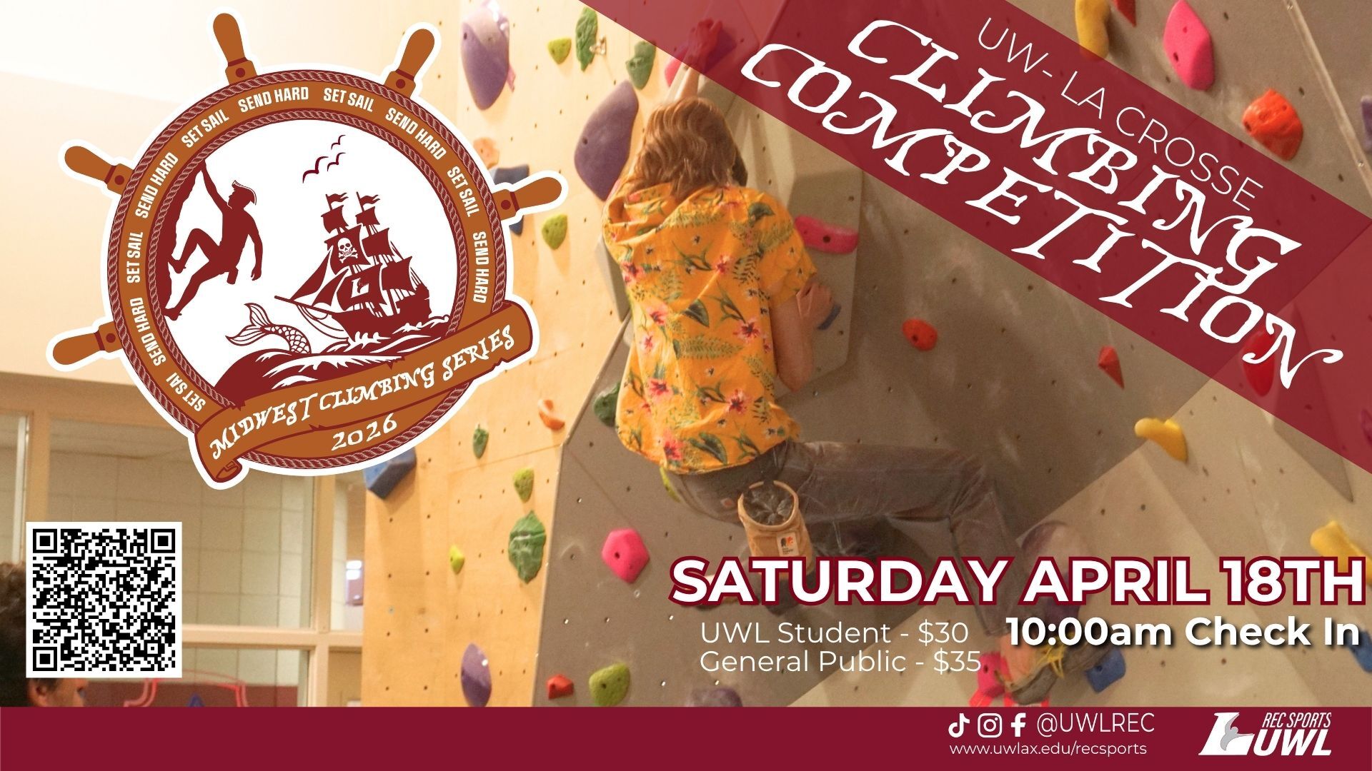 The Midwest Climbing Series (MCS) aims to promote and support the growth of the Midwest Climbing community by fostering connections and building relationships through collaborative efforts and the spirit of competition. We are happy to be one of the many schools across the Midwest to host a competition as part of this series. Typically our competition is hosted mid to late April and requires we be closed for a week prior for a complete reset.