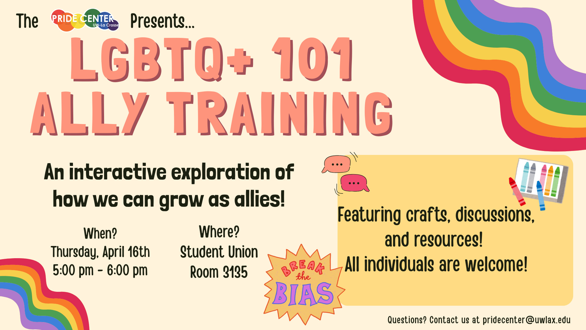 Questions? Contact us at pridecenter@uwlax.edu