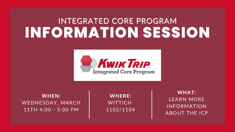 CBA Integrated Core Program LogoApplications for the Fall 2026 Kwik Trip ICP Program are available now (see below)!