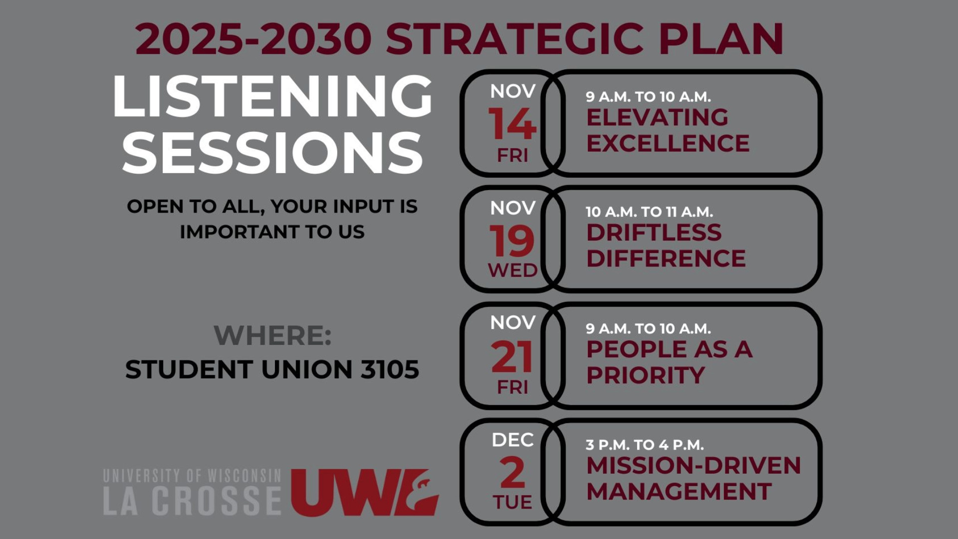 UWL consistently delivers a high-quality and life-changing experience. We’re able to do it because of you, our talented and dedicated faculty and staff. You are the reason for our excellence!