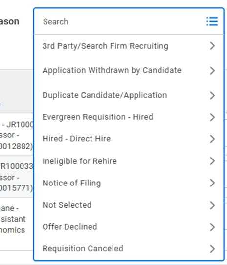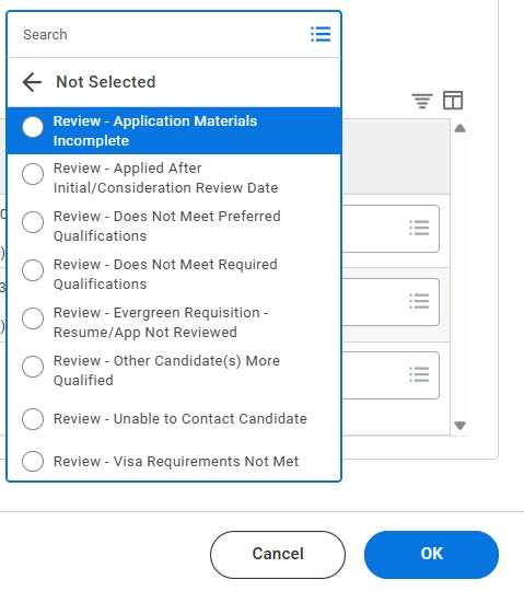 - Identify and decline candidates who do not meet minimum qualifications, selecting the appropriate reason in Workday. This step can only be performed by the Search Chair.