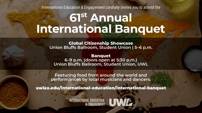2026 marks the 61th anniversary of the International Banquet. The UW-La Crosse International Education & Engagement (IEE) invites the La Crosse community to attend the 2026 International Banquet!