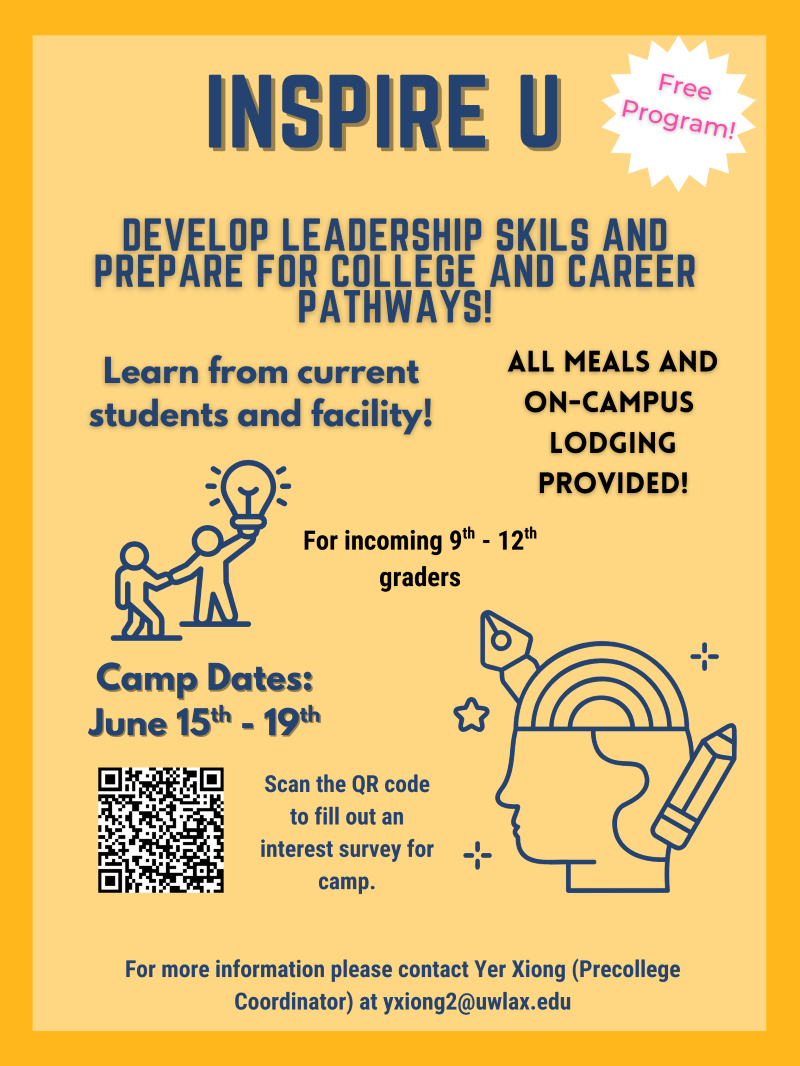 Questions can be directed to precollege@uwlax.edu. or Yer Xiong (Precollege Coordinator) at yxiong@uwlax.edu.