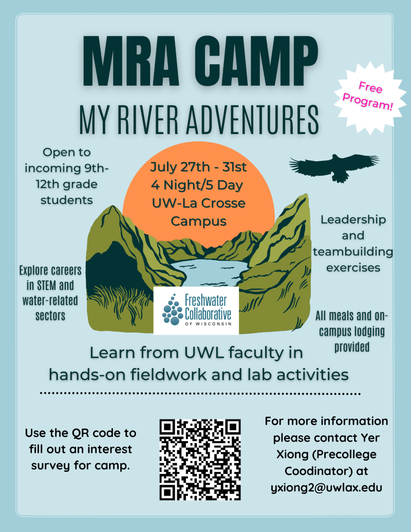 The UWL Pre-College Programs is excited to host My River Adventures (MRA) again! This is an environmental focused residential summer camps for incoming 9th-12th grade students!