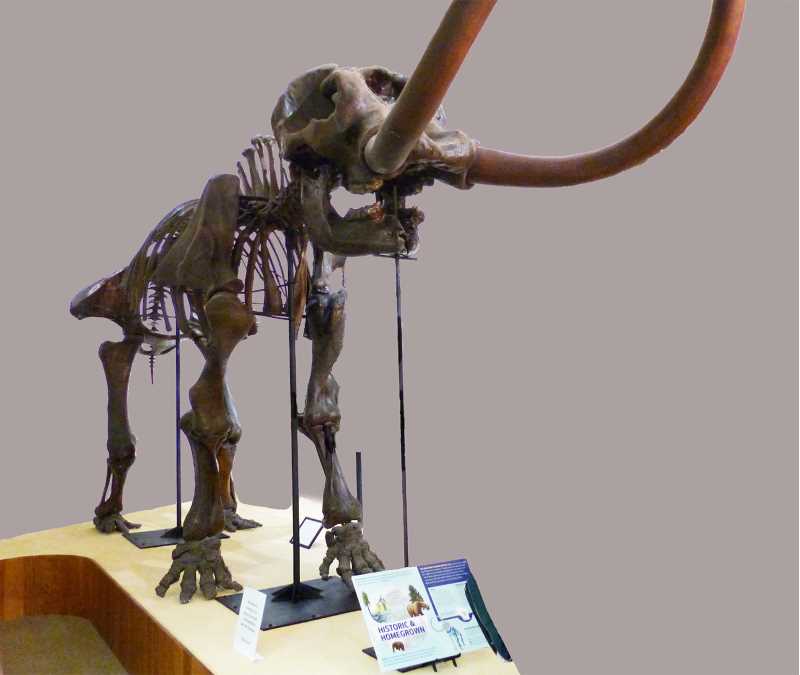 Some boys found the Boaz Mastodon in 1897 after heavy rains uncovered the enormous bones on their farm, near the town of Boaz in Richland County, Wisconsin. The bones were recovered and taken to UW- Madison, where they and bones from other mastodons (especially those from nearby Anderson Mills) were used to create the composite mastodon that’s on display today. The Boaz bones have now been dated to about 12,000 years ago, and recent detective work has shed light on the display’s fascinating history: https://archive.jsonline.com/news/wisconsin/researcher-unravels-century--old-wooly-tale-to-find-truth-behind-legendary-massive-bones-b99502786z1-304635421.html.