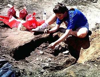 Features represent areas of a specific past activity. They may be hearths, pits excavated by prehistoric peoples for storage or garbage dumps, house basins, walls, and so forth. Features were often formed in a short period of time, and become a snapshot of the past. What distinguishes a feature from another kind of artifact is that the feature itself is not portable, it can't be brought into the lab. Archaeologists can excavate a hearth and retrieve the material IN the hearth, but not the feature itself. That is recorded through the photographs, maps, soil samples, and so forth, that describe the pit or hearth.