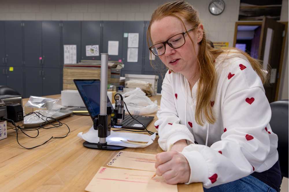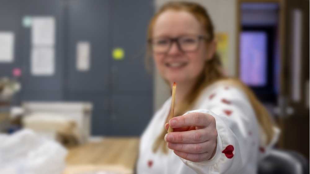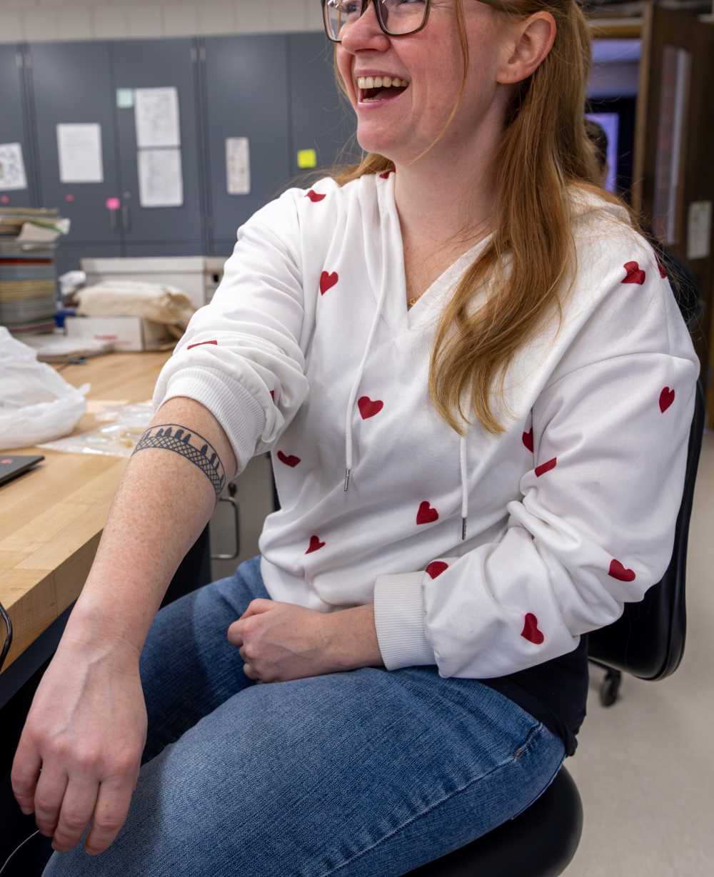 Liz Scott, a senior archaeology major, tests the tools on synthetic skin. Her experimental archaeology could help modern archaeologists better recognize the tools used for tattooing in ancient times..