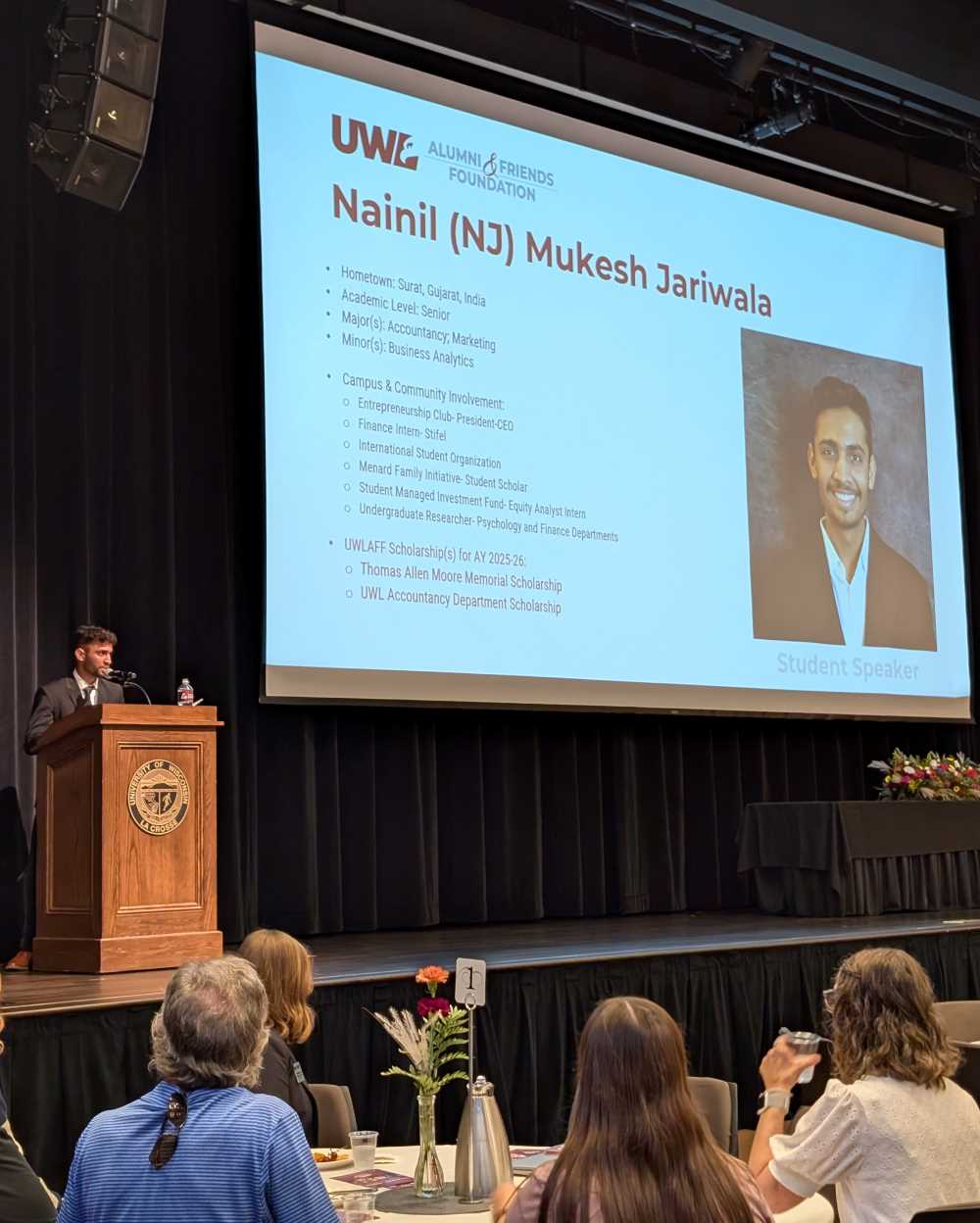“Thank you, UWL, for unlocking the resources that turned that dream into reality — a dream shared not just by me, but by my dad, my mom and my sister. For that, we are deeply grateful.”