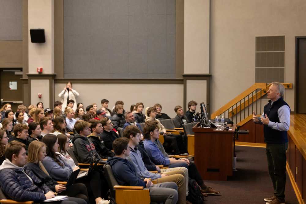 Dan Florness, president and CEO of Fastenal, speaks to students as part of the College of Business Administration's Benson First Friday Lecture Series.